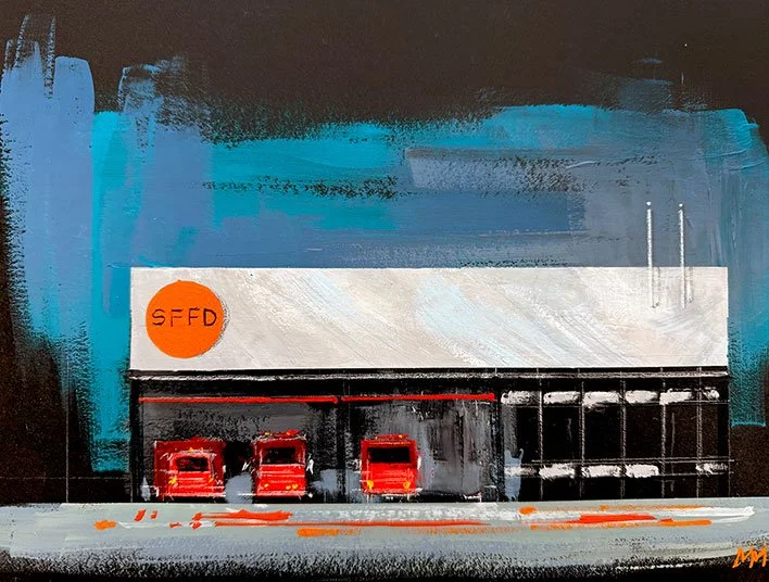 8”x10” Mini Treasures, actual buildings and some imagined. Mixed media: framed, unframed, and small print options.